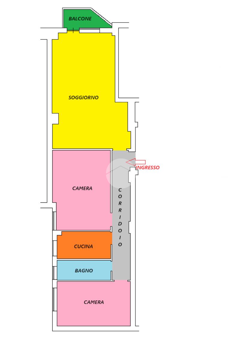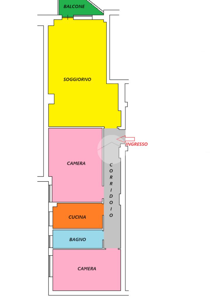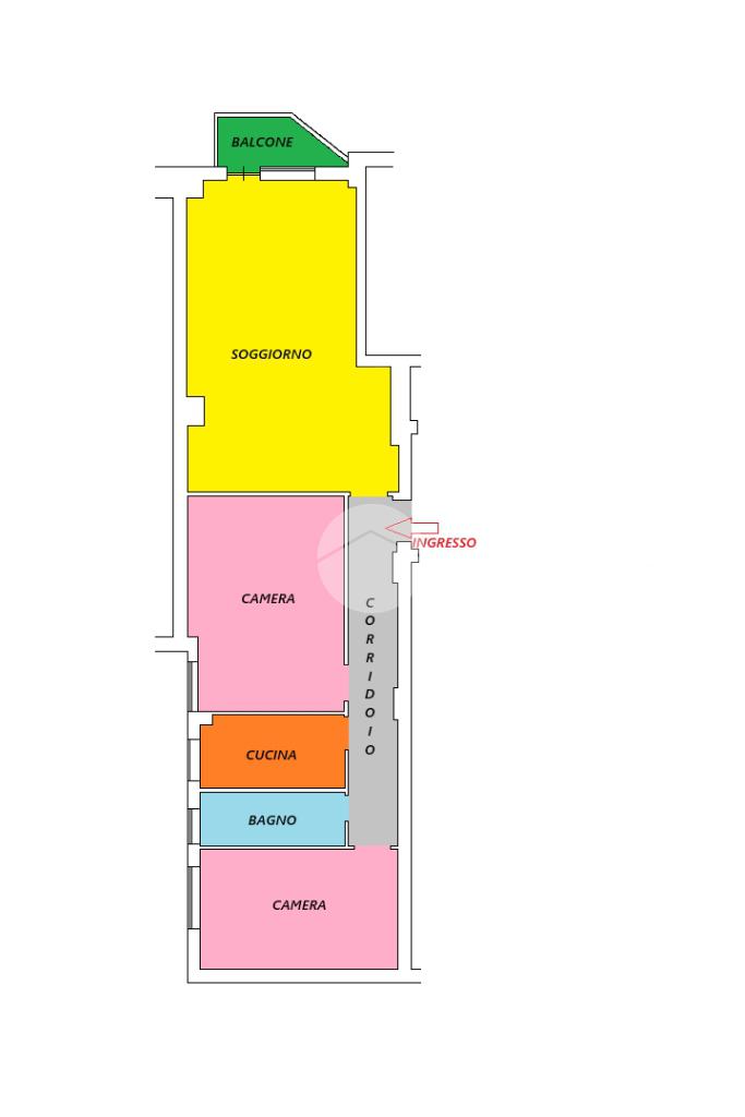 Proponiamo la vendita di un appartamento sito al secondo piano composto da: ingresso, corridoio, soggiorno, cucina, due camere, bagno, e un balcone.