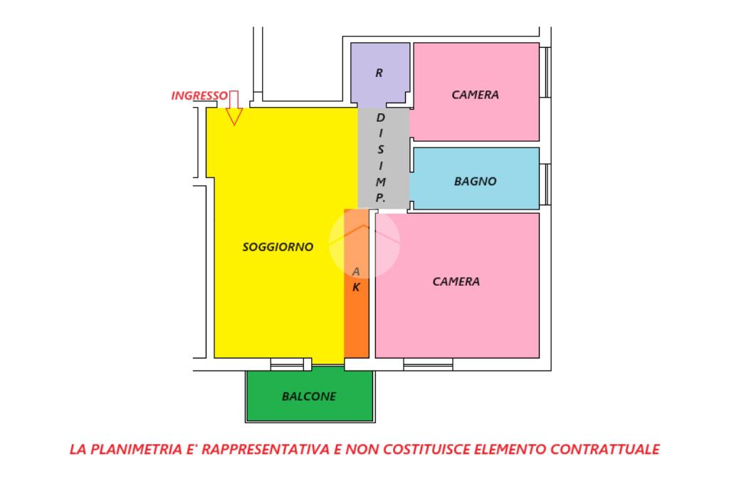Proponiamo la vendita di un appartamento sito al secondo piano composto da: ingresso, soggiorno con angolo cottura, disimpegno, due camere, ripostiglio, bagno, e un balcone.