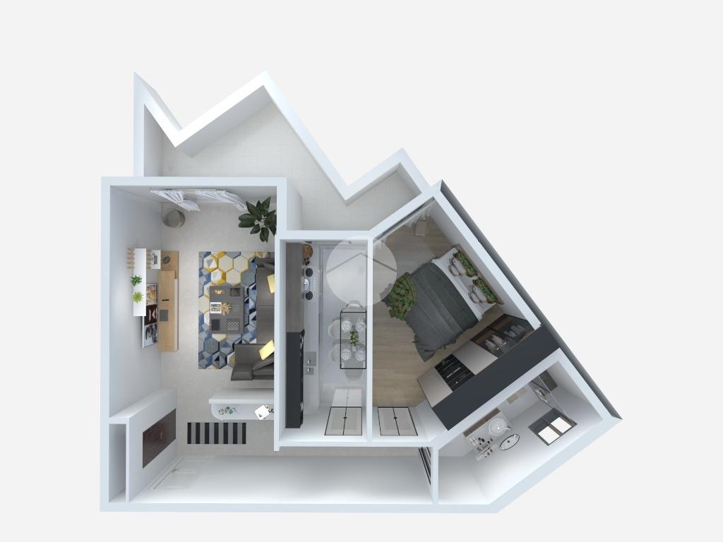 L'appartamento vanta un’ottima distribuzione degli spazi interni ed è cpmposto da: ingresso, soggiorno, cucina semi abitabile, camera da letto e bagno.