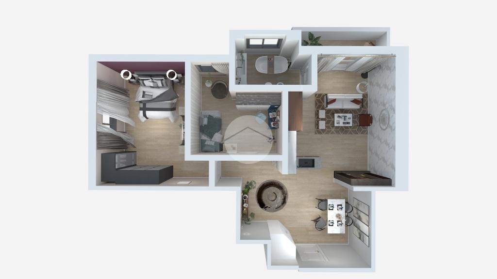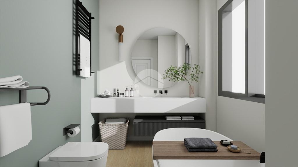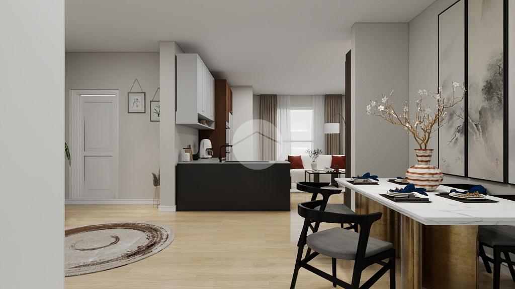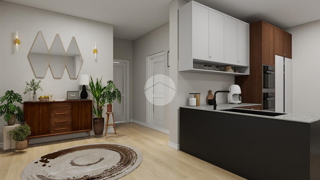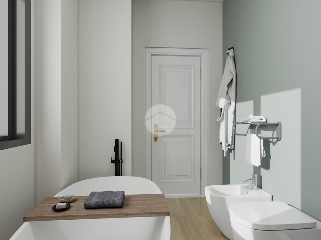 Nell'annuncio è presente un render per una eventuale risrtrutturazione dell'appartamento, trasformandolo in un triocale.